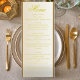 Bring a timeless touch to your wedding reception with this elegant ivory and yellow wedding menu card. Designed with soft cream tones and a refined golden-yellow font, this classic menu is perfect for traditional, romantic, or formal weddings. Fully customisable – edit names, date, location, and meal details to match your celebration. A beautiful way to add a polished finish to your table setting.