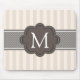 Elegant Ivory Beige Stripes Brown Custom Monogram Mouse Pad