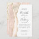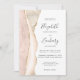 The left-hand edge of this elegant modern wedding invitation features a watercolor agate border in shades of ivory and blush, trimmed with faux gold glitter. The customisable text combines handwriting, copperplate and italic fonts in charcoal grey on a white background. The reverse side features a matching ivory and gold agate design.