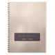 Elegant modern professional luxury looking notebook for home interior decorator | designer | architect | artist | salon | fashion designer with a dark plum rectangular label against a glitter light cream champagne foil. Personalise it with your name and text in trendy faux gold typography!
