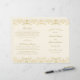Delicate gold damask flourishes adorn a warm ivory background on this beautifully refined ceremony program. Intricate filigree borders frame "Marriage Ceremony Uniting" in elegant script for a sophisticated vintage look, with a coordinating backing design. Inside pages are fully customisable for your bridal party, ceremony order, and a personal thank you message on the back cover. Programs are printed on text-weight paper and arrive flat, requiring a simple centre fold.