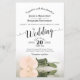 This beautiful budget or affordable wedding invitation features a romantic design with a single long-stemmed ivory peach rose laying on its side and reflecting in a pool of water. The typography features lacy script calligraphy and a sophisticated layout. The back is a marbled pale orange colour. Wonderful way to invite your friends and family to share in your joy on your special day.