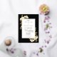 Vintage ivory garden roses embellish the gold foil edge of your elegant black wedding invitation. Choose this classic invitation to set the atmosphere for your perfect traditional wedding. Gold foil text and a rich gold foil edge add luxury to this bespoke wedding invitation.