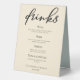 This sleek ivory wedding bar menu table tent sign features beautiful minimalist black typography on the cream colour for your formal event. Traditional colours combined with the current trend of simple script on neutral colour decor with your drinks list.