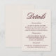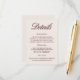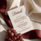 Provide guests with all the essential information in style with this elegant wedding details card. Featuring a deep burgundy background paired with refined serif and script typography, this insert is perfect for formal, vineyard, or evening weddings. Use it to share travel directions, hotel accommodations, RSVP instructions, or your wedding website link. Fully customisable. Coordinates with the matching “Sabrina” —follow the link on this page to view matching signage, menus, invitations, and more. • Mockups for this design were created using Midjourney AI.