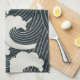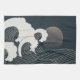 Elegant Japanese Waves Black and White Artwork | Tea Towel
