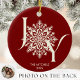 Elegant JOY Burgundy Photo Christmas Ornament