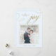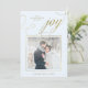 This beautiful Christmas card says "joy" in elegant, swirly faux gold calligraphy, with your personal photo on a soft pastel blue background.