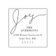 Elegant Christmas return address stamp design featuring a hand lettered script that says "joy" on the top. Customise this product by adding your name and address. Use this stamp when sending out Christmas cards and gifts!