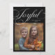 Elegant holiday card featuring a typography text that says "joyful" in a calligraphy font above your square photo. Add a second photo on the back along with your message. Background is black.