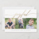 This multi-photo holiday card features a classic white background and elegant faux gold foil calligraphy script greeting that simply says "joyful". This design accommodates three square photos, which is perfect for those social media pics. You can customise this design further by changing the background colour on both the front and the back, plus adding another photo or additional text to the backer.