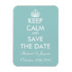 Elegant Keep calm save the date magnet for wedding. Keep calm and carry on parody, Personalizable design with name of bride and groom. Teal and white or custom background colour. Beautiful stylish mariage theme.