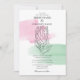This design features an elegant black outline illustration of a king protea flower. Pink and green watercolor brush strokes bring the black and white floral illustration to life. Pink and green paint strokes create the floral colour tones which compliment the design. The design sits centred separating the sophisticated typography. Elegant wedding invitation design with modern elements. Matching wedding stationery items and other wedding invite formats are also available.