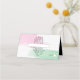 This design features an elegant black outline illustration of a king protea flower. Pink and green watercolor brush strokes bring the black and white floral illustration to life. Pink and green paint strokes create the floral colour tones which compliment the design. The reverse of the place card showcases the bride and grooms names and wedding date. Elegant wedding place card design with modern elements. Matching wedding invitations and other stationery items are also available. Easy to personalise with your details. Hand write your guest names and table number in the space provided.
