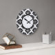 Elegant kitchen wall clocks with floral damask pattern in classic black and white and classy clock number markings that add a touch of class to the design. Create as a kitchen clock, housewarming gift, or a decorative clock for a bedroom or dining room.