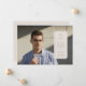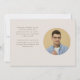A full-bleed graduation photo announcement card with an elegant label overlay with space for the grad's name, school and class year.