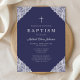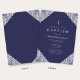 Elegant Lace Navy Blue Baby Boy Baptism Invitation