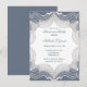 This ornate lace border design features delicate floral patterns and intricate embroidery-style detailing, creating a romantic and timeless frame ideal for wedding invitations, announcements, or keepsakes. The soft blue gradient background adds a touch of sophistication, while the blank centre provides space for personalised text or photos.