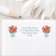 Timeless return address label design featuring a THE Christmas classic of a crimson poinsettia, this time in a blue and white ginger jar planter.