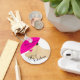 50 & Fabulous keychain. Elegant lady in a hot pink hat, hot pink lipstick and pearls. Art Deco retro elegance. Great Gift or party favours for your special 50th birthday. Personalise with your name and birthday. For the special lady who wants to celebrate her fiftieth birthday with style, grace and elegance.
