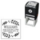 Stylish self-inking stamper features a modern holiday wreath design that frames a custom name and return address that can be personalised.