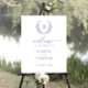 Elegant Laurel Wreath Monogram Crest Wedding Welcome Sign. Navy Blue Wreath Wedding Welcome Sign. Vintage Botanical Leaves Wreath Wedding Crest