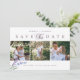 Elegant and rustic watercolor lavender with 3 photo collage in horizontal format, typography in dusty purple save the date card.