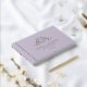 Personalise this elegant monogrammed wedding guestbook featuring real gold, silver, or rose gold foil on exquisite monogram and front, spine, and back text. Lavender purple cover background colour in a luxurious velvety-soft texture, and beautiful modern calligraphy details in a clean, minimal, and sleek style. Three size options with three inside paper-type choices. Personalise the guestbook with your monogram initials and wedding date on the front, your choice of text for the spine, and a smaller monogram with your initials on the back and one text section for your date, any other message you like, or if you prefer the design without this section, leave the corresponding template text box in blank to delete. Part of our Lavender Monogram wedding collection with many coordinating products available.