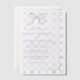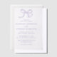 Set the tone for your wedding with this elegant vellum invitation, featuring a hand-drawn bow in a lavender hue. Matching purple lettering presents your names and wedding details in a sophisticated pairing of serif and script fonts on a sheer vellum background. A refined choice for spring or summer weddings, this design combines classic simplicity with a subtle pop of colour.