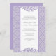 This classic and elegant wedding invitation is created in a lavender damask. This wedding invitation is perfect for a formal wedding. Matching save the date cards, response, reception, direction and thank you cards are also available. Design by Mujka