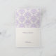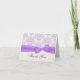 Pretty wedding / bridal shower thank you note card, with a lavender and ivory damask pattern, on top, and solid ivory, on the bottom. Graphics of a lovely lavender ribbon and bow decorates the front of the card. Text in dark lavender is fully customisable to suit your needs. Great way to send your thanks after the bridal shower or wedding.