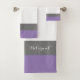 Elegant Lavender Purple Stripes Script Monogram Bath Towel Set