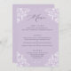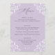 Elegant Lavender Purple Wedding Menu: This luxury wedding menu is perfect for an elegant, classic wedding. It features a vintage ornate border on a lavender / lilac background paired with modern and elegant calligraphy. See all of the matching products below.