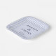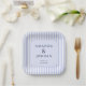 This elegant wedding plate features a clean, modern design with vertical blue stripes framing a soft lavender central panel. The layout is symmetrical and balanced, showcasing customizable text in a classic serif font that adds sophistication to the minimalist aesthetic. Perfect for formal occasions, this design conveys a mood of understated luxury and timeless beauty, making it an ideal choice for couples seeking a refined yet contemporary look for their special day.