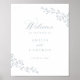 Elegant Leaf Branch Botanical Dusty Blue Wedding Welcome Poster Sign. Traditional Classic Wedding Welcome Sign