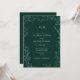 The invitation features an intricate leafy line art motif framing your special invitation details, where you feature the couples' initials in a beautifully crafted monogram. A hand lettered calligraphy font adds an elegant touch that will bring the whole look together, in a timeless colour combo of Emerald Green and bright white.