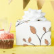 An elegant black outline illustration of green and brown leaves on a black stem with a white background.