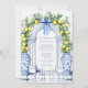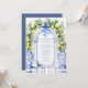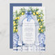 Invite your guests to a celebration of love and timeless beauty with this stunning wedding invitation. Featuring a breathtaking arch of lush greenery intertwined with vibrant lemons, this design evokes the romance of a sun-kissed garden. Elegant pillars frame the scene, while exquisite blue ornate vases on each side add a touch of sophistication and European charm. The formal typography enhances the refined aesthetic, creating an invitation that exudes grace and elegance. Perfect for a classic and romantic wedding, this design sets the tone for an unforgettable day filled with love and joy.