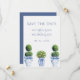 Mark your calendars for a wedding to remember! This elegant Save the Date features lovely accents with vibrant lemons, evoking the romance of a sun-kissed garden. Elegant topiaries in exquisite blue ornate vases on each side add a touch of sophistication and European charm. With refined typography enhancing the design, this card sets the tone for a celebration filled with love, elegance, and timeless beauty.