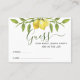 Elegant Lemon Guess How Many Bridal Shower Game Card.