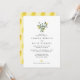 Simple and elegant watercolor lemons citrus greenery in a jar arrangement wedding invitation with classic font below. On the back of the invite is watercolor lemon pattern.