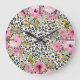 Elegant Leopard Print and Floral Design Large Clock