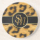 Elegant Leopard Print Monogram - Sandstone Coaster