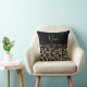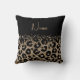 This decorative pillow features a stylish design with a luxurious touch. The upper section is a solid black background, transitioning into a glamourous leopard print pattern with gold accents towards the bottom. Across the top, an elegant gold script displays the word "Name," suggesting that this pillow can be personalised with custom text. The combination of black, gold, and leopard print creates a sophisticated and fashionable appearance, making this pillow a standout piece in any space. Ideal for those who appreciate both bold patterns and personalised décor.