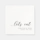 These elegant 'let's eat' napkins are the perfect way to decorate a classic and minimal wedding reception breakfast or dinner.