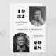 Honour a beautiful life well lived with this elegant Celebration of Life invitation. Designed to commemorate the memory of a loved one, this template features a striking layout with two arch photos - one from childhood and one in later years - symbolising the full circle of life. With bold black and white typography displaying the birth and passing years and space for key event details, this invitation provides a touching tribute to someone special. Perfect for funerals, memorial services, or celebration of life gatherings. Celebrate a legacy. Share the love. Available as both a printed card and a digital download.