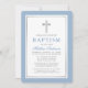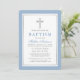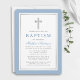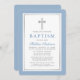 Elegant Light Blue and Silver Baptism Invitation with Cross.