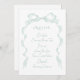 Elegant wedding menus feature hand drawn ribbon bow with modern handwritten script fonts in light green, clean and simple. Great for modern romantic wedding, unique fun whimsical wedding, elegant casual wedding.