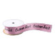 A pattern of black display text is on this light pink ribbon. The text is an elegant black script. You can edit the text to show a name or another custom message.