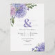 Elegant Watercolor Lilac & Blue Hydrangeas Floral Bouquets Silver Foil Wedding Invitation.